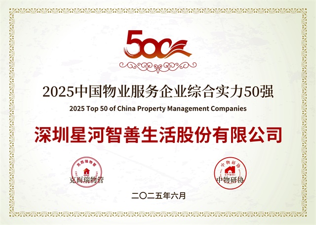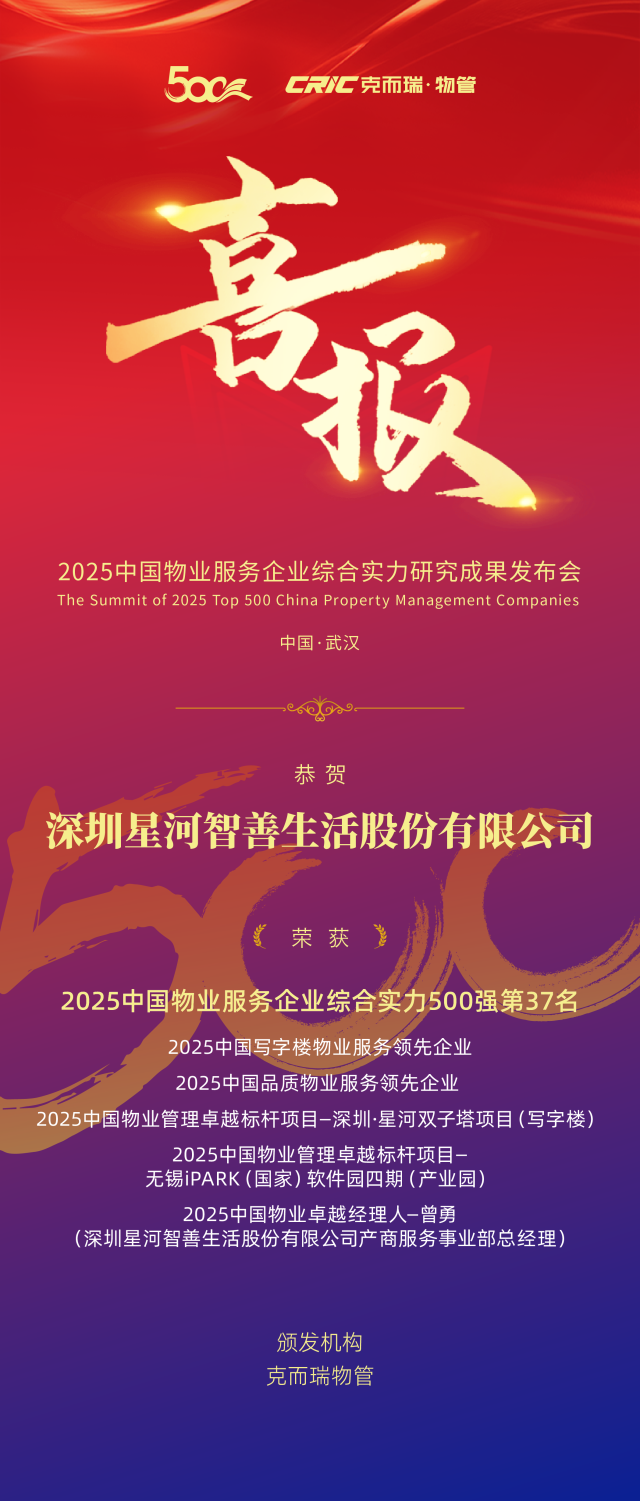 喜报丨深圳w66国际·利来最给力的老牌智善生活股份有限公司荣获“2025中国物业服务企业综合实力500强第37名”等奖项
